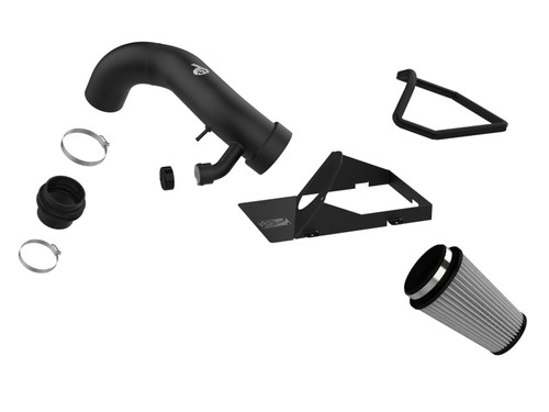 This aFe POWER Pro 5R air filter is a 7” tall, pre-oiled, 360-degree radial flow performance air filter with five layers of progressively finer cotton gauze media for maximum performance. It provides your engine with the largest amount of high-flowing air, usually resulting in the highest power gains out of all our filter media options. This media is perfect for street and/or track use. One piece 3 IN mandrel-bent wrinkle-black powder-coated aluminum intake tube directs unrestricted airflow from the massive filter to the turbo for more horsepower and torque. aFe developed this sturdy 18 gauge steel wrinkle-black powder-coated heat shield to mount onto the top of the lower half of the factory airbox to provide a hassle-free installation utilizing factory mounting locations. Premium hardware and clamps are used to securely mount the high flow air filter and the intake tube.