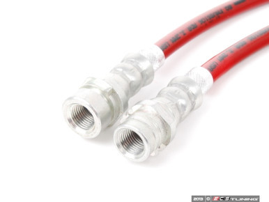 Even when new, factory style fabric mesh lined rubber hoses are prone to expansion under the pressure of hard braking, whether it be highway panic stops or threshold braking at the track. This expansion is even more prominent in aged and weathered rubber hoses. ECS Tuning's Exact-Fit lines are engineered and assembled with braided stainless steel mesh and?offer?superior expansion resistance and reinforcement. The?resistance to expansion creates a firmer pedal, and a more direct pedal feel. The signature red polymer coating provides additional protection from the elements and abrasion common with the constant movement of suspension and braking systems.