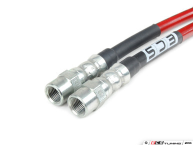 Even when new, factory style fabric mesh lined rubber hoses are prone to expansion under the pressure of hard braking, whether it be highway panic stops or threshold braking at the track. This expansion is even more prominent in aged and weathered rubber hoses. ECS Tuning's Exact-Fit lines are engineered and assembled with braided stainless steel mesh and?offer?superior expansion resistance and reinforcement. The?resistance to expansion creates a firmer pedal, and a more direct pedal feel. The signature red polymer coating provides additional protection from the elements and abrasion common with the constant movement of suspension and braking systems.